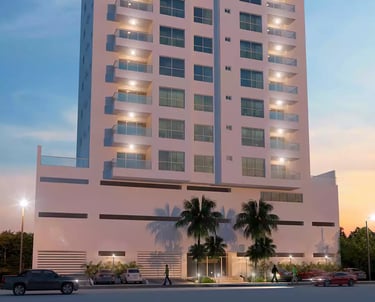 El render nocturno realzó la geometría del edificio mediante un juego de luces en balcones y remates, respondiendo a la necesidad de transmitir seguridad y modernidad. Gracias a la simulación de iluminación puntual y materiales reflectantes, se potenció la visibilidad y el atractivo para compradores de perfil medio-alto.