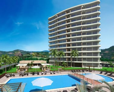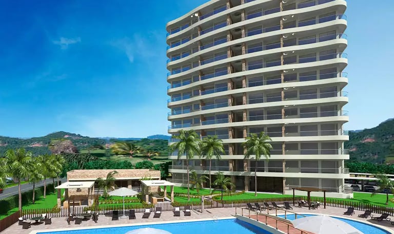 Este render integró áreas de piscina y recreación alrededor de la torre curva, satisfaciendo la demanda de amenities premium. Al representar con detalle los acabados en madera y vidrio, y el flujo entre espacios sociales, el cliente pudo promover un estilo de vida resort, elevando el posicionamiento del desarrollo.