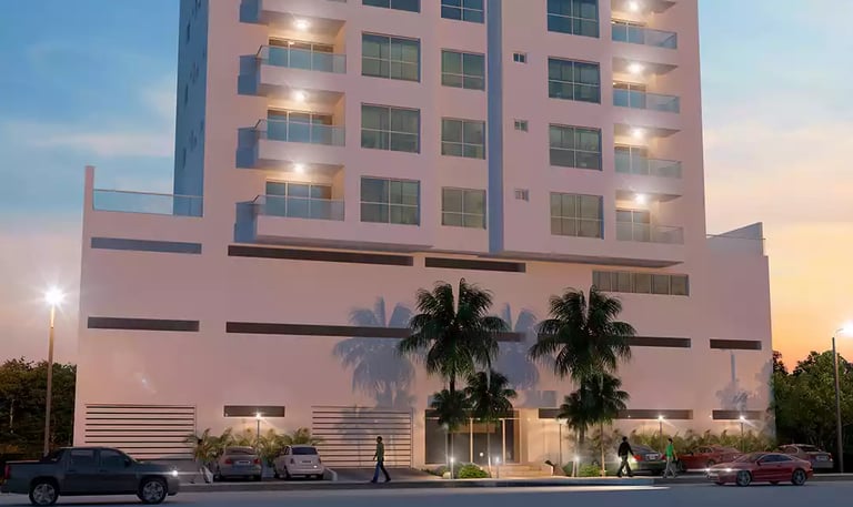 Este render creció la proyección del proyecto al mostrar su perfil vertical al atardecer, cumpliendo la necesidad del promotor de destacar la textura y presencia urbana. Con iluminación cálida y detalles nítidos en la fachada, se reforzó la percepción de solidez y carácter contemporáneo, agilizando la aprobación.