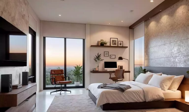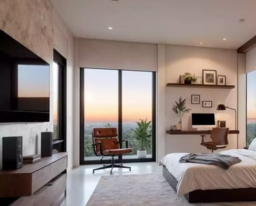 Este render permitió al promotor inmobiliario presentar la amplitud y luminosidad de la alcoba, respondiendo a la demanda de compradores que buscan vistas panorámicas y diseño cálido. Al destacar materiales de alta calidad y una distribución eficiente, facilitó la venta anticipada de unidades mostrando un ambiente confortable y sofisticado.