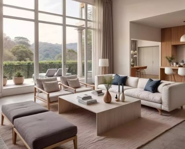 Este render permitió al propietario visualizar la sala como un área social fluida conectada con el entorno exterior. Al enfatizar materiales naturales, mobiliario de proporciones generosas y ventanales de piso a techo, satisfizo la necesidad de luminosidad y confort, acelerando la aprobación del diseño y destacando su carácter acogedor.